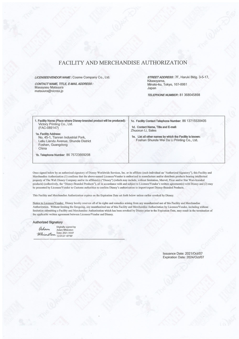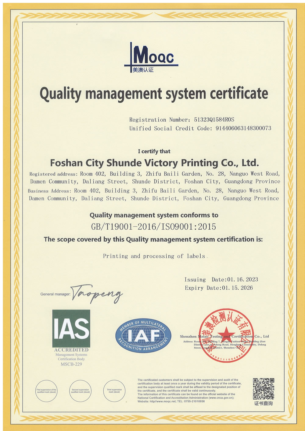 威达力印刷有质量体系ISO9001认证,环境管理体系ISO14001认证, FAMA迪士尼授权生商等质显管理体系,质量体系严格遵盾行业标准。